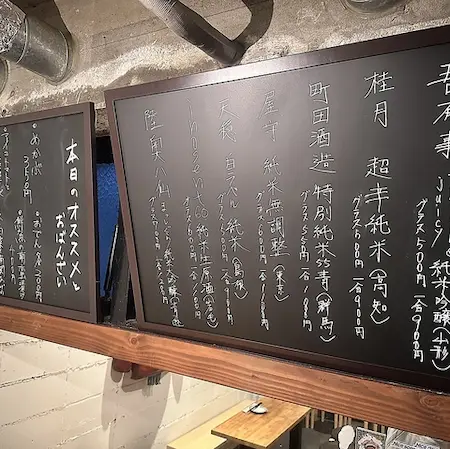おすすめは店名の由来でもあります黒板メニューの、その日の日本酒とその酒に合わせた一品料理の組み合わせです。その他にもクラフトビールや自然派ワイン・ジン・焼酎・ウイスキーなどをご用意しています。